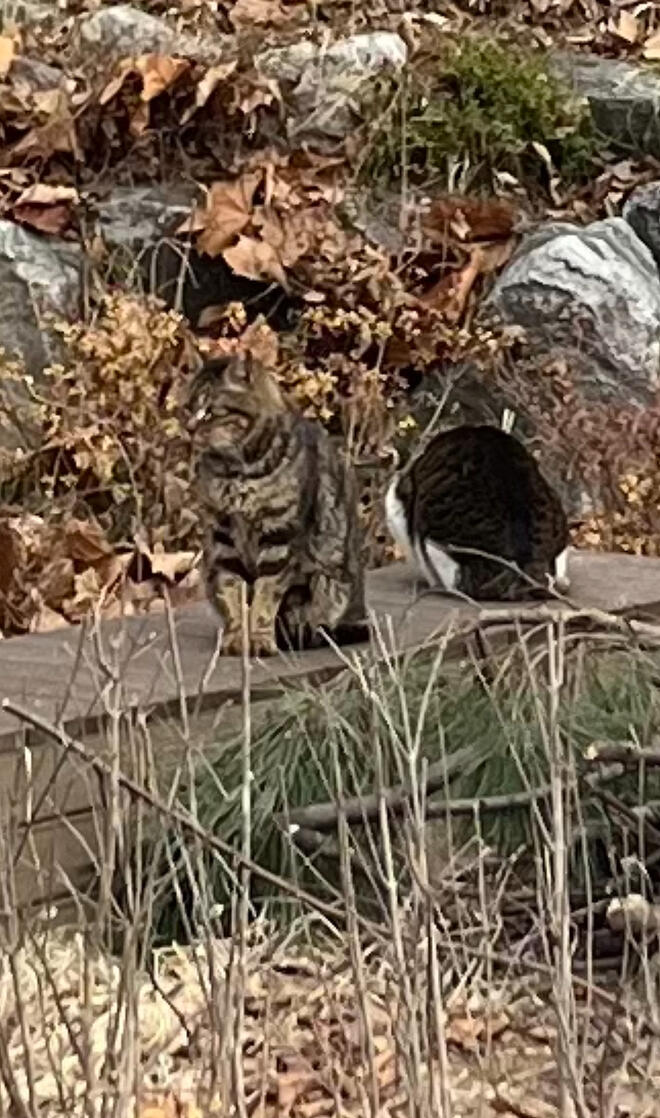 날이 풀리고 야외에 나와 잠시 커피 한 잔.. 고개를 돌리니 고양이들도 나와서 볕을 쬐고 있네요. 두 마리 중 한마리는 털색깔 때문에 자연스레 위장모드가 되어 있는 게 재미있어서 한 장 찍었습니다. (정답은 댓글란에^^) 여유로운 오후입니다.