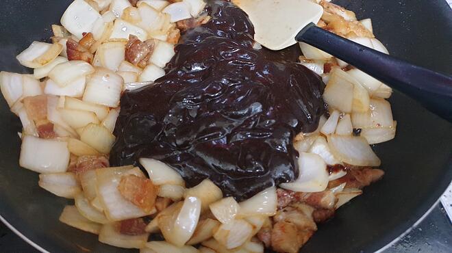 이미 설탕, 간장, 캬라멜 소스 같은 그런 중국집 짜장 맛이 나는 거 같아서 제가 춘장 볶아서 하는 거랑 또 다른 맛이더군요.