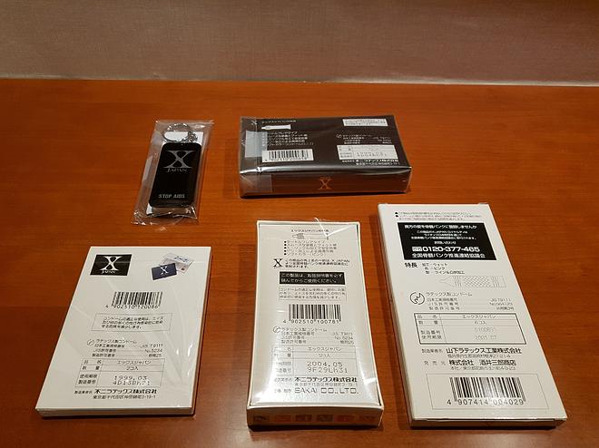 하아... 이걸 어떻게 말씀드려야하나... 엑스재팬이 한참 잘나갈때는 로고만 달아도 판매되는 시절이 있었습니다. 그때 나온 에이즈 예방용품입니다. 미갭옹으로 구했지만 제가 관리부족으로 비닐들이 터졌어요. 이런것들도 있답니다.^^