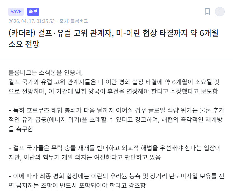 [정치경제] 이란전 관련 주요 기사