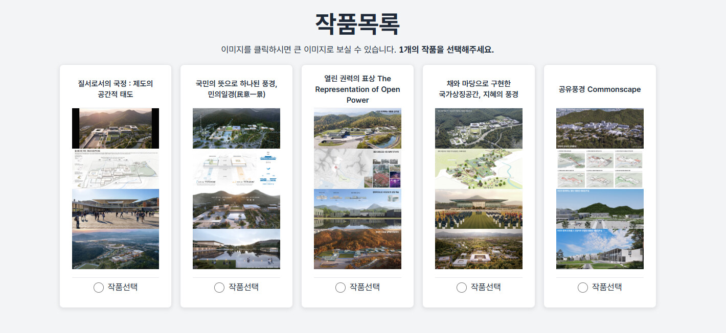 세종에 새롭게 만들어질 대통령 집무실로 원하는 설계안 하나 픽해주세요.