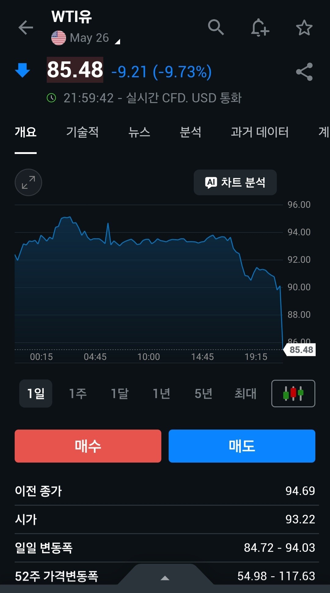 30분전에 확인 했을 때, 오후에 적지않은 하락으로