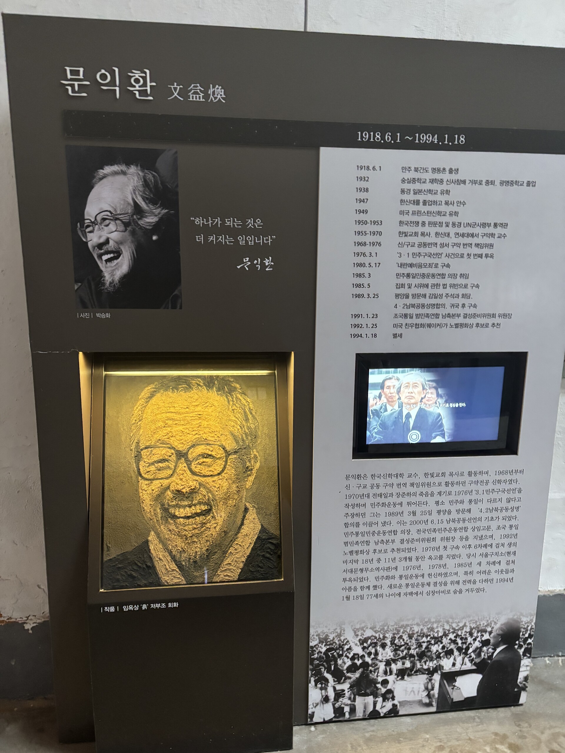 오랜만에 문익환 선생님, 이 글에는 올리지 않았지만 김근태 선생님 사진과 간단한 일대기를 형무소에서 보니 감회가 새롭고 다시 한번 감사한 마음을 가지게 되더군요.