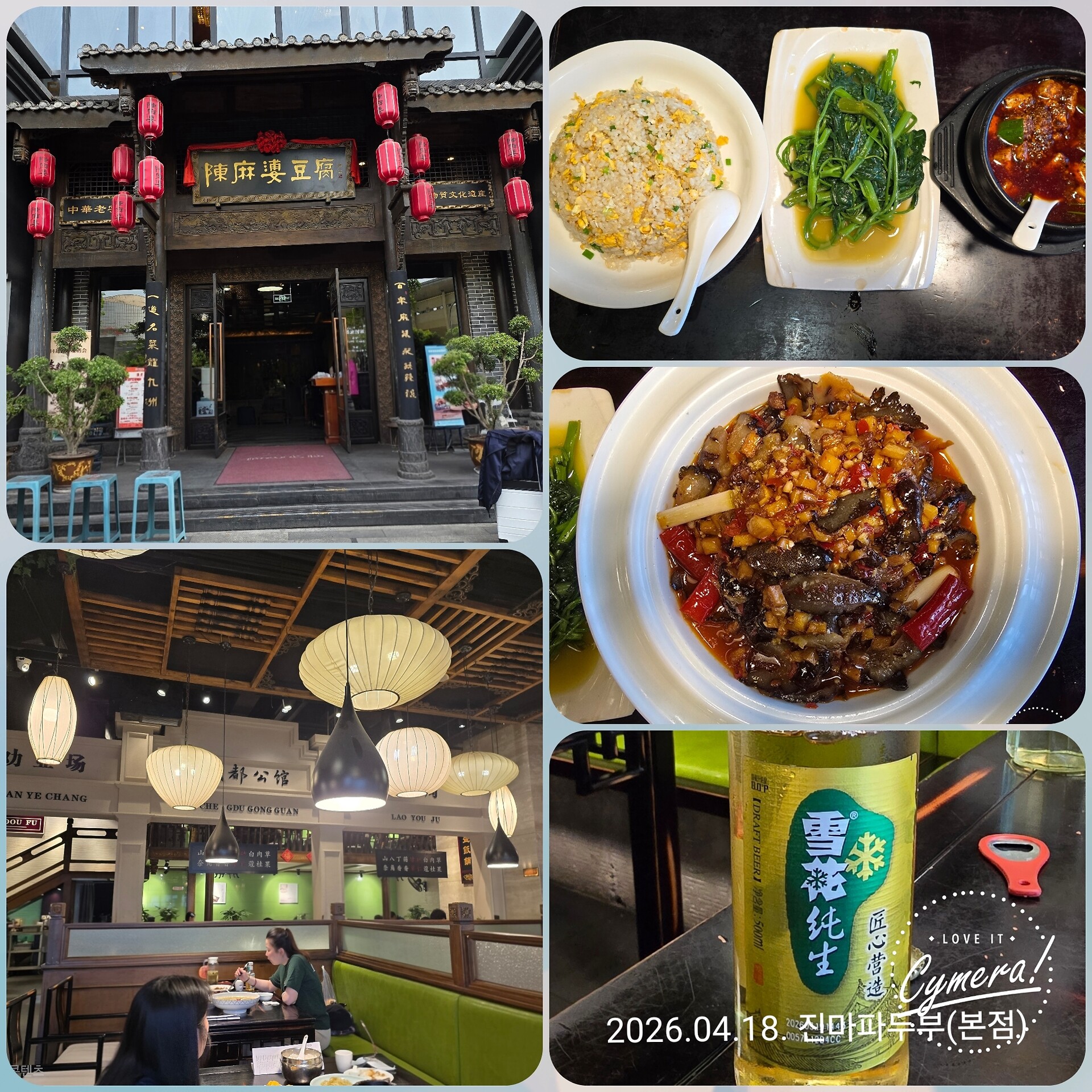 점심을 예전 백종원이 나왔던 진마파두부 집에서 거하게 먹었네요. 소문데로 맵고 짜지만 맛은 있습니다. 꼭 밥이랑 같이 먹어야 할듯요. 저 맥주 드래프트 인데 시원한게 맛있었네요!