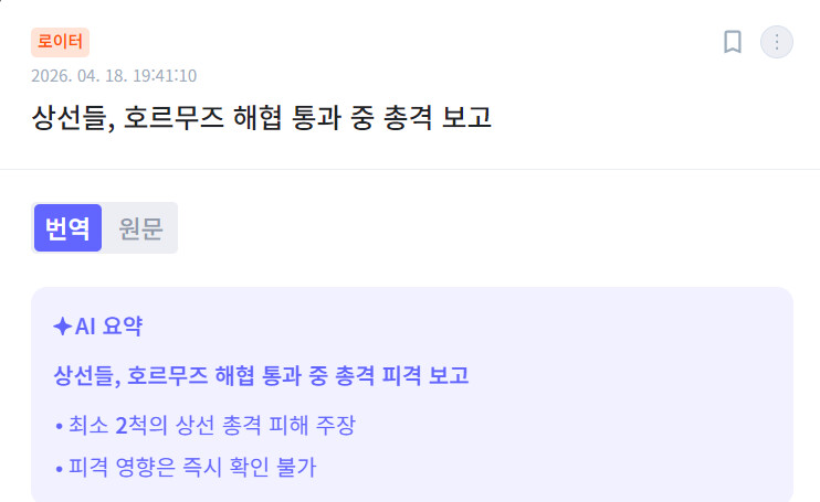 몇몇 유조선 선단이 통과해서 좀 풀리는가 싶었는데..총격이 있었네요