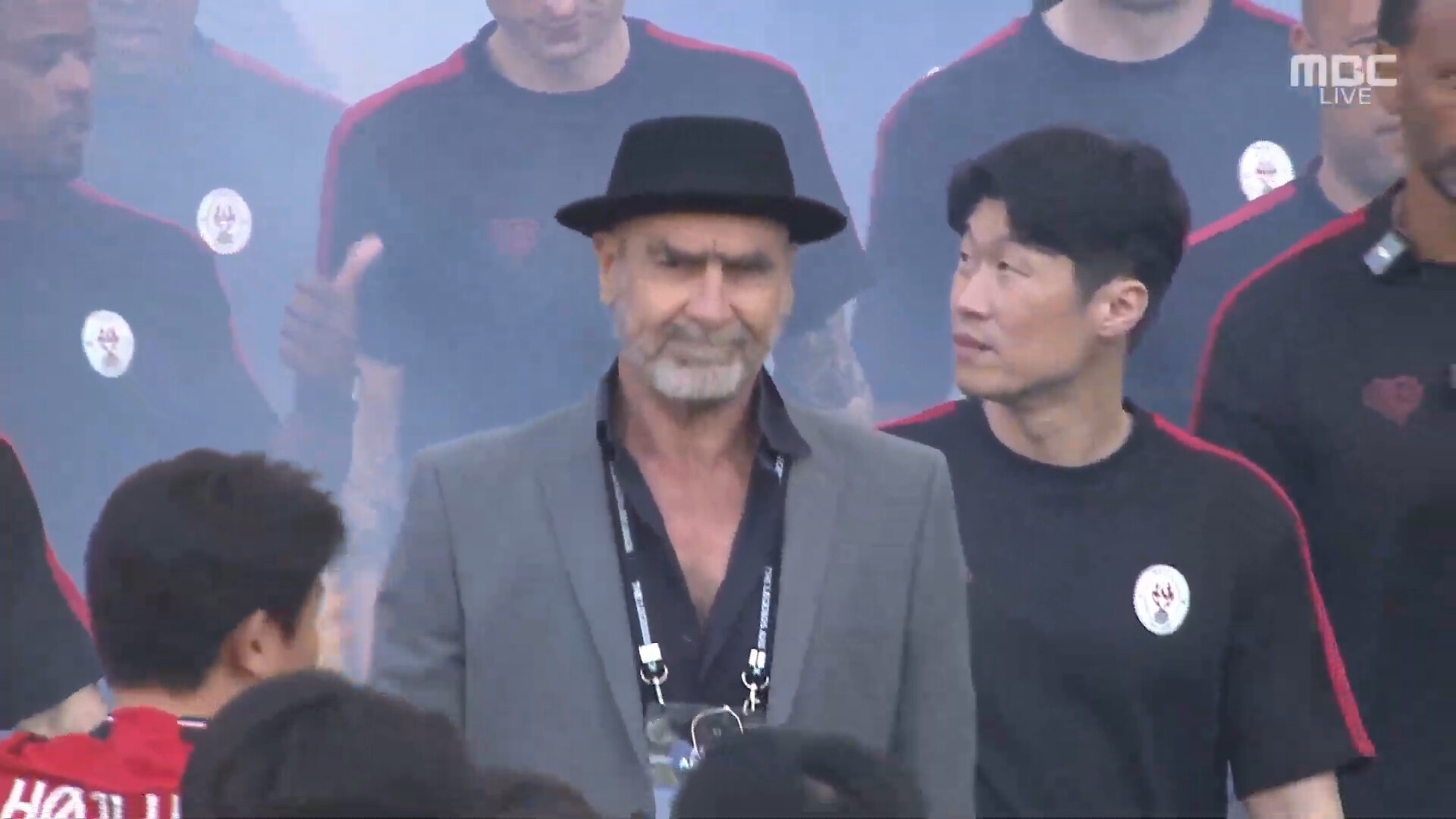 유튜브에서는 시합직전 등장하는거 보여주던데 에릭 칸토나 역시나 마피아 보스처럼 등장하네요