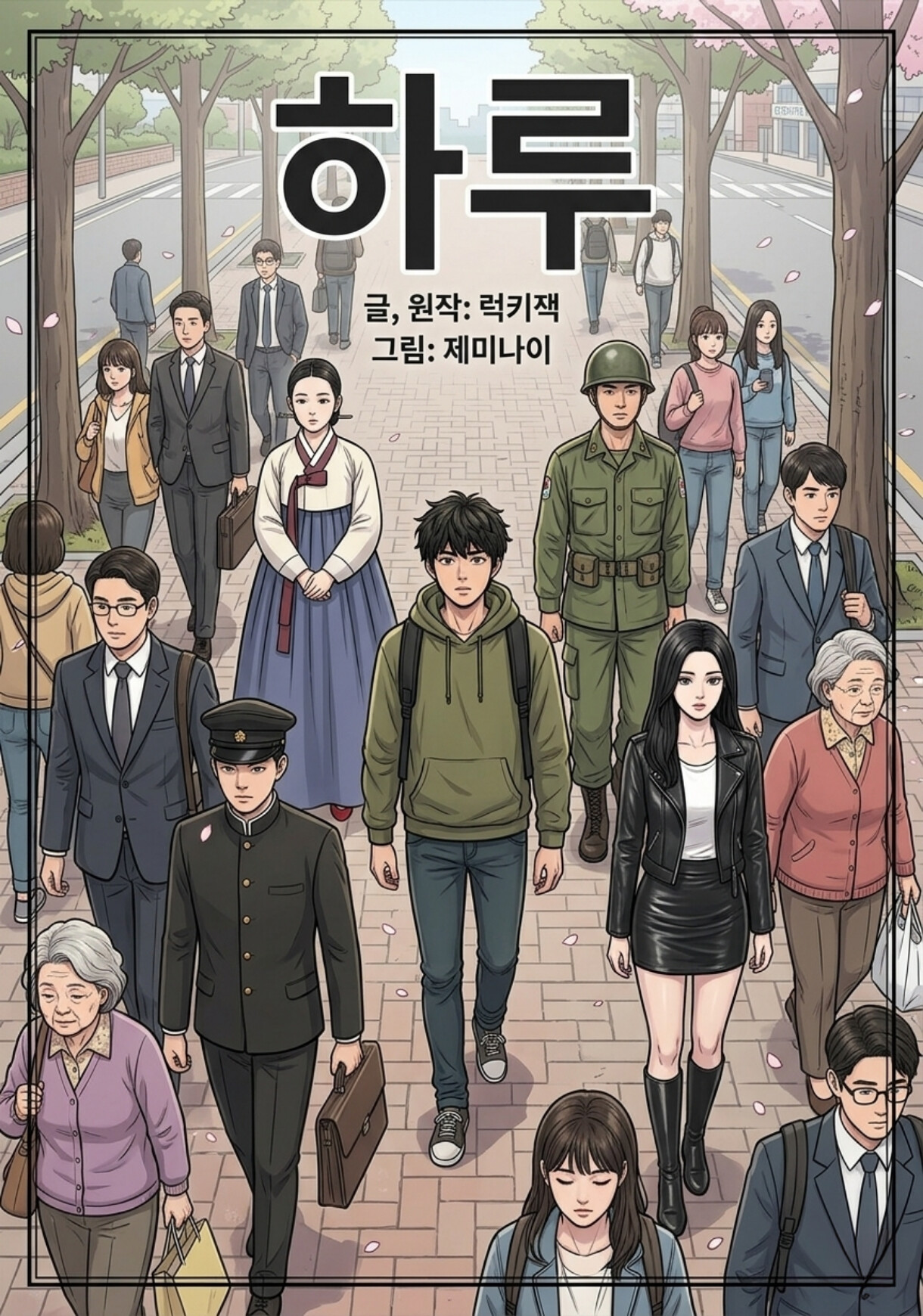 강의실에서 강의듣고, 공강시간에 도서관 기웃거리다가 일과 마치고 친구와 술한잔 하고, 돌아오는 길에 편의점 들러 물건 몇가지 사서 자취방에 돌아와 불끄고 자는 내용