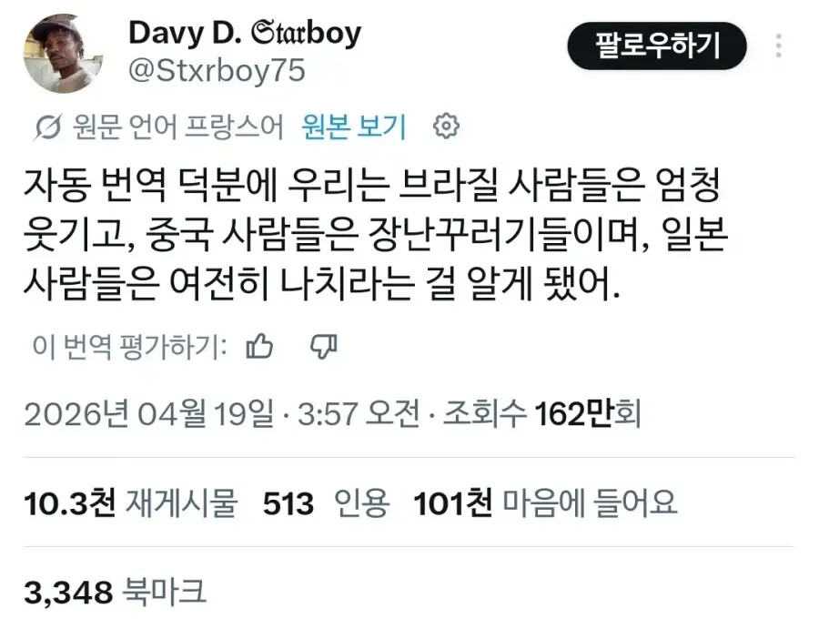 트위터 자동번역으로 진실을 알게된 프랑스인