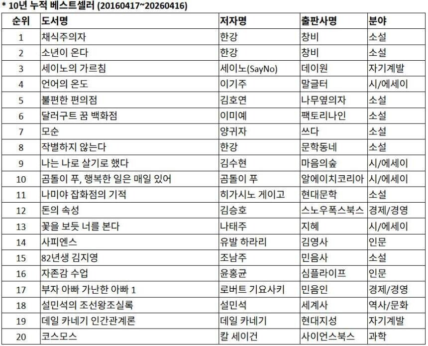 [책] 교보문고에서 지난 10년간 가장 많이 팔린 책 20권