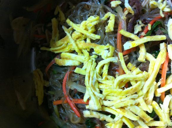 잡채 맛나요...^^ 잡채를 기름에 볶지 않고 물에 삶기만해서 만들어도 담백하고 좋더군요..