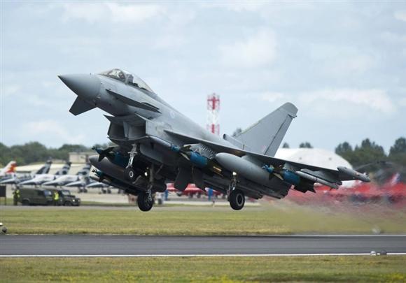 에서 시범비행 중인 영국 공군의 타이푼 전투기들입니다.)