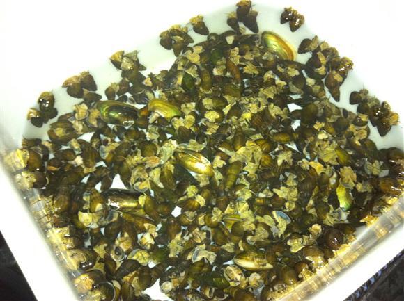 아는분이 잡아주신 다슬기와 민물조개.