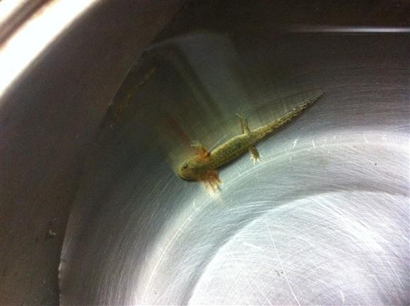 위 미꾸라지들 정리하는도중 제 눈에 발견되서 소금에 절여지기전 발견된 어린 도룡뇽