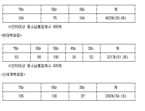[차한잔] [금융] 공정위-대형 백화점, 판매수수료 3~7%p 인하 타결