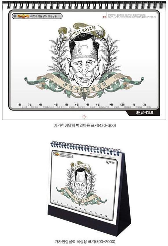 가카헌정달력은 벽걸이용(420*300)과 탁상용(300*200), 가카마블로 구성된 3종 세트 상품입니다.