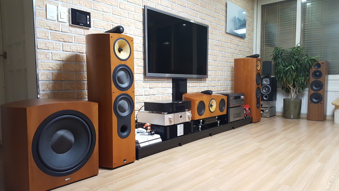 B&W 7.1 채널에 Marantz PM-14S1 SE 인티 앰프 및 프런트 파워 바이패스 Integra DTC 9.8 프로세스에 Rotel RMB 1066 파워앰프, 그리고 나중에 애트모스 시스템으로 가기 위한 Inkel AM9080 파워앰프, 소스 기기는 Marantz UD7007...그리고 PS4