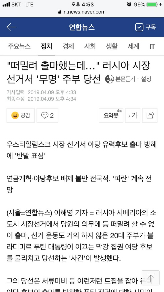 야당후보 출마방해라니....러시아도 거의 일당독재라고 봐야겠네요.