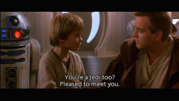 아나킨과 오비완이 에피소드 I 에서 처음 만나 악수하며 서로 웃음짓는 장면을 생각하면