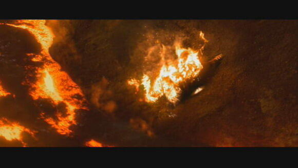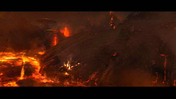 치열한 끝에서 오비완은 높게 점프하여 용암강 위의 언덕으로 올라가고,