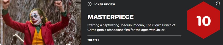 https://www.ign.com/articles/2019/08/31/joker-movie-review - 10점만점 부여