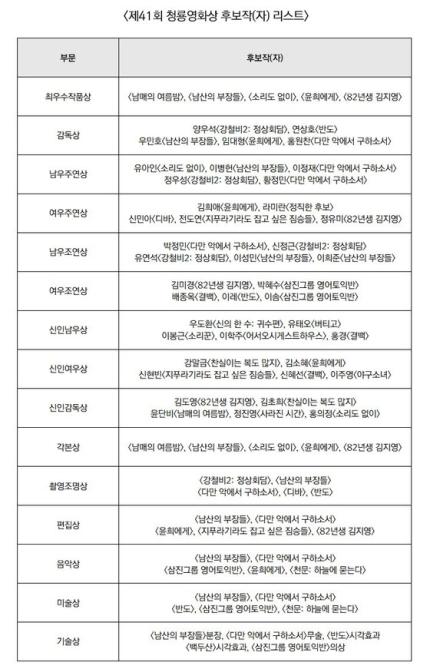 아니 왜 후보에 "사라진 시간"이 없는거죠? 정진영 배우도 신인감독상 후보 넣어줘야하는거 아닌가 ㅠㅠ 영화관에서 두번보고 VOD도 사고 DVD도 사고 BD도 사고 진짜 재밌게 본 영화인데ㅠㅠ