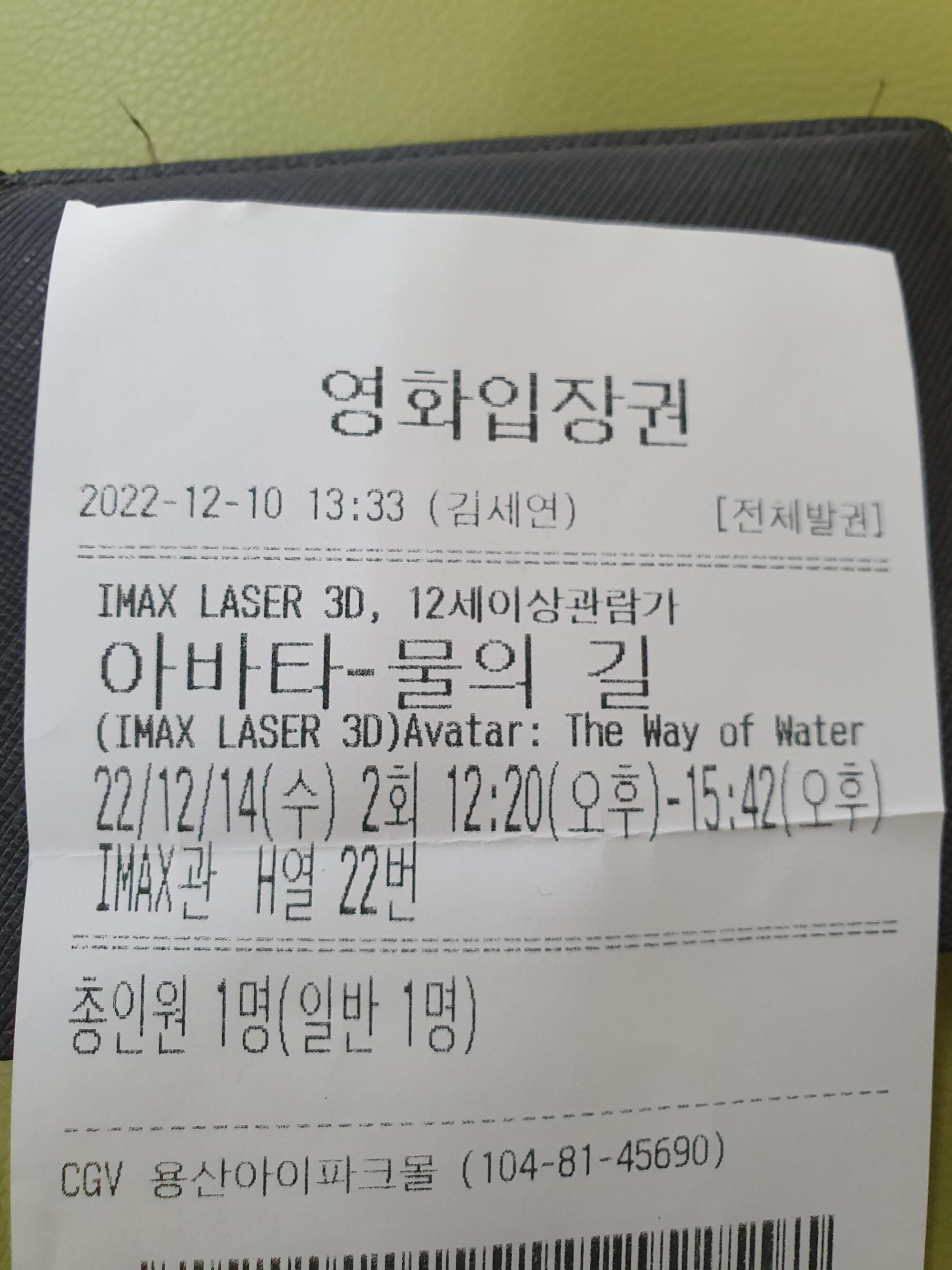 3시간 20분이 마치 2시간처럼 흘러갔고, 스토리도, 영상미도 전작보다 조금 더 나아진 기분입니다. 특히 처음 바다에 들어가는 장면은 너무 황홀해서 저도 모르게 눈물이 날 지경이더군요.