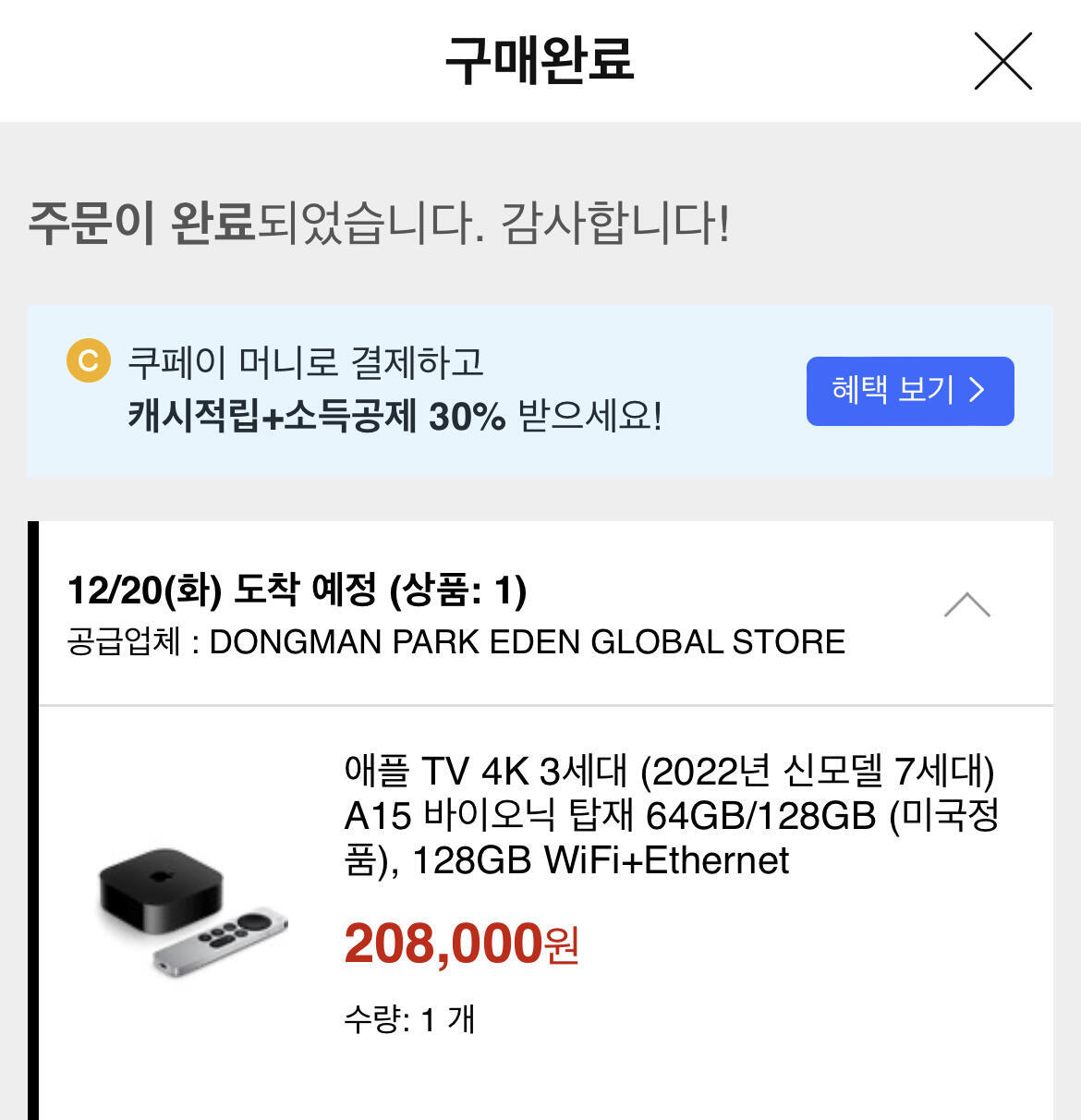 3세대도 SKB 셋탑박스로 이용 가능하다는 말에 바로 질렀습니다 쿠팡 직구 가격좋네요 애플코리아 정발 가격보다 싸고 배송도 몇일 더 빠릅니다 소진시 종료라 사실분들은 서두르세요 (몇개 안남은듯요) 나에게 주는 소소한 크리스마스 선물 ㅜ