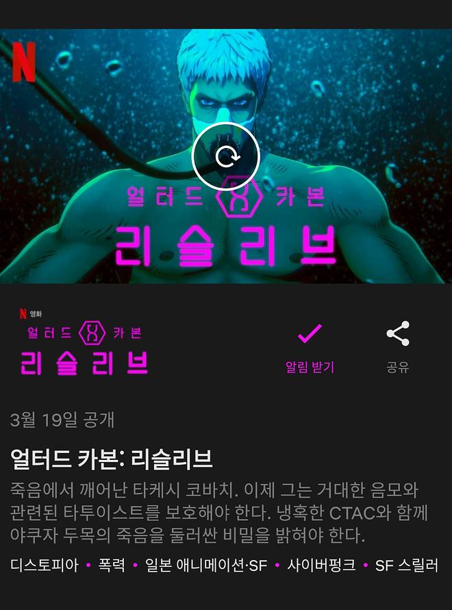 얼터드 카본이 애니메이션으로도 나오네요. 와...