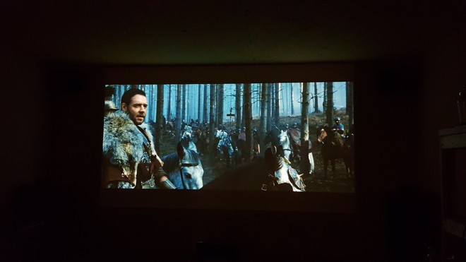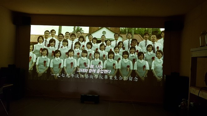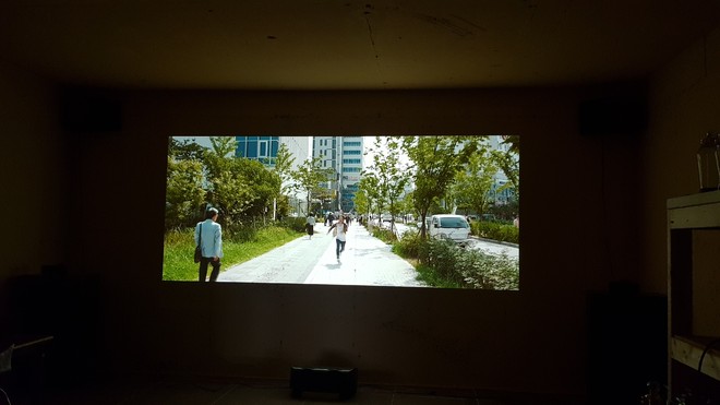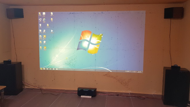 이번에 스크린이 미리 준비되지 않아 기존 콘크리트벽에 붉은색계통(황토색?) 페인트가 칠해져 있는 곳에 투사 해 보았는데 예상박으로 화질이 좋네요. 흰색 아니면 회색이란 고정관념을 버려야 겠다는 생각이 듭니다