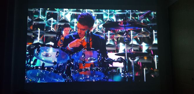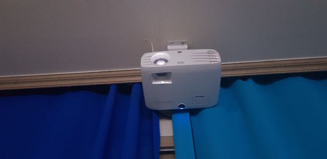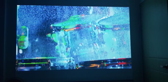 투사거리가 2m90 밖에 안돼서 벽을 가득 못채우는게 아쉽네요. 근데 스크린은 100인치로 구매했거든요. 벽이 생각보다는 좀 컸나..