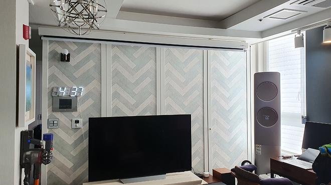 그래도 간접조명만 켜놓고 보면 그런대로 볼 만 함. 직접조명이 있으면 스크린에 비춰져서 화질이 많이 흐려짐.