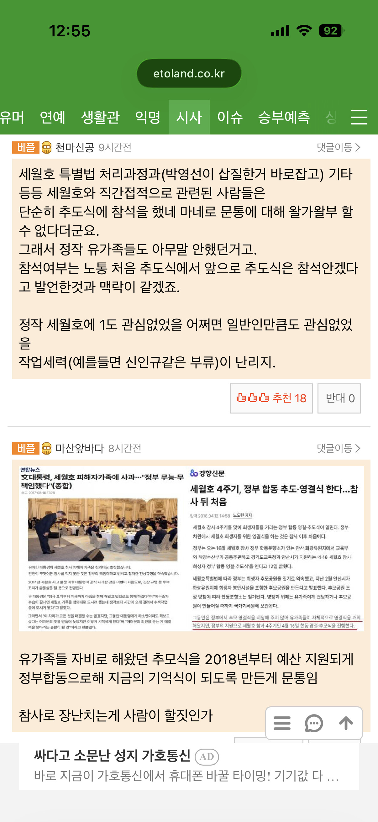 지난 16일 세월호 기억식에 이대통령 참석이 단순한 공식일정이 아니었네요 1년전 유가족의 부탁을 기억해서 지킨 것이었군요